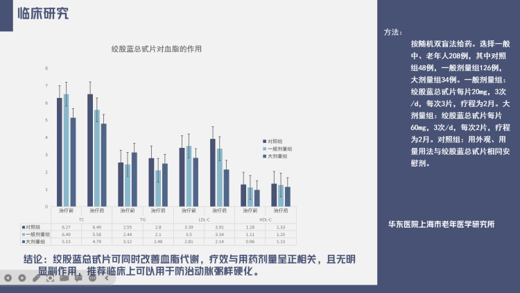 本次会议的另一大亮点则是对于新的降脂用药方案的讨论,其中绞股蓝总甙在降脂及心脑保护方面的作用引人注目。
